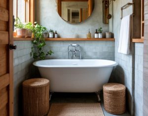 Отличным решением для маленьких ванных комнат может стать угловая сантехника. Угловые раковины, компактные душевые кабины и даже угловые ванны позволяют максимально использовать каждый сантиметр площади. Такая планировка делает помещение более гармоничным, а свободная середина комнаты остаётся открытой, что визуально расширяет пространство. Комбинированные решения, такие как душевая зона с перегородкой или шторкой и встроенные системы хранения под раковиной, помогают экономить место и сохранять порядок. Компактные стиральные машины также можно разместить под раковиной или в нише с раздвижной дверцей.